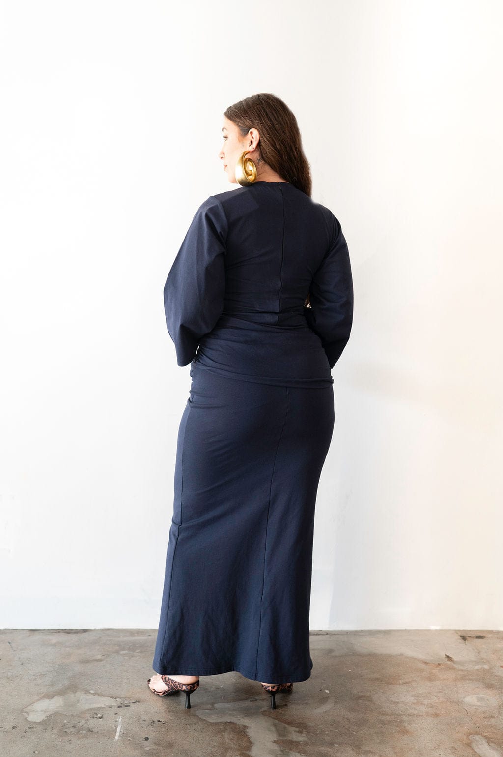 - Maxi length, slightly flared at bottom.