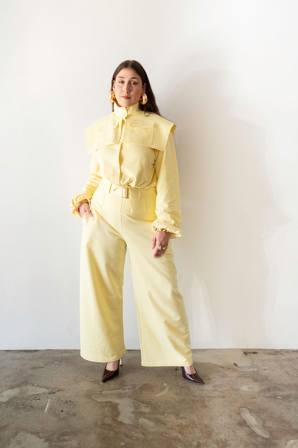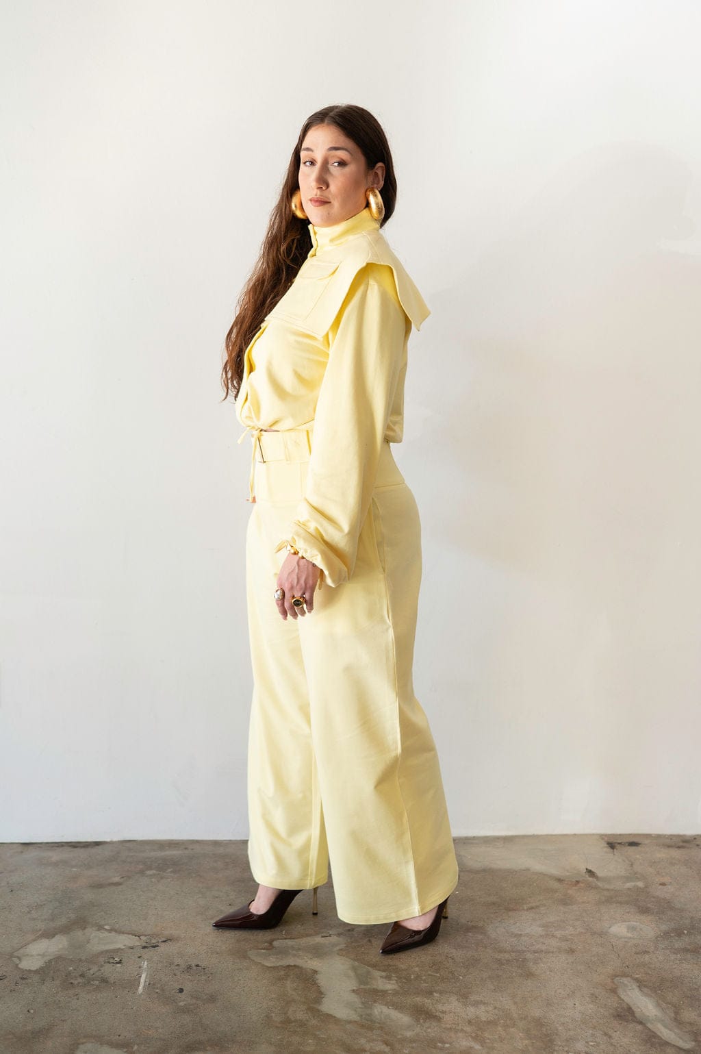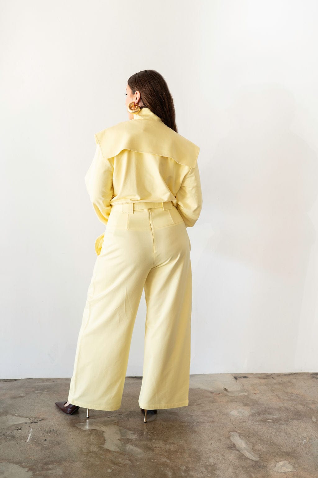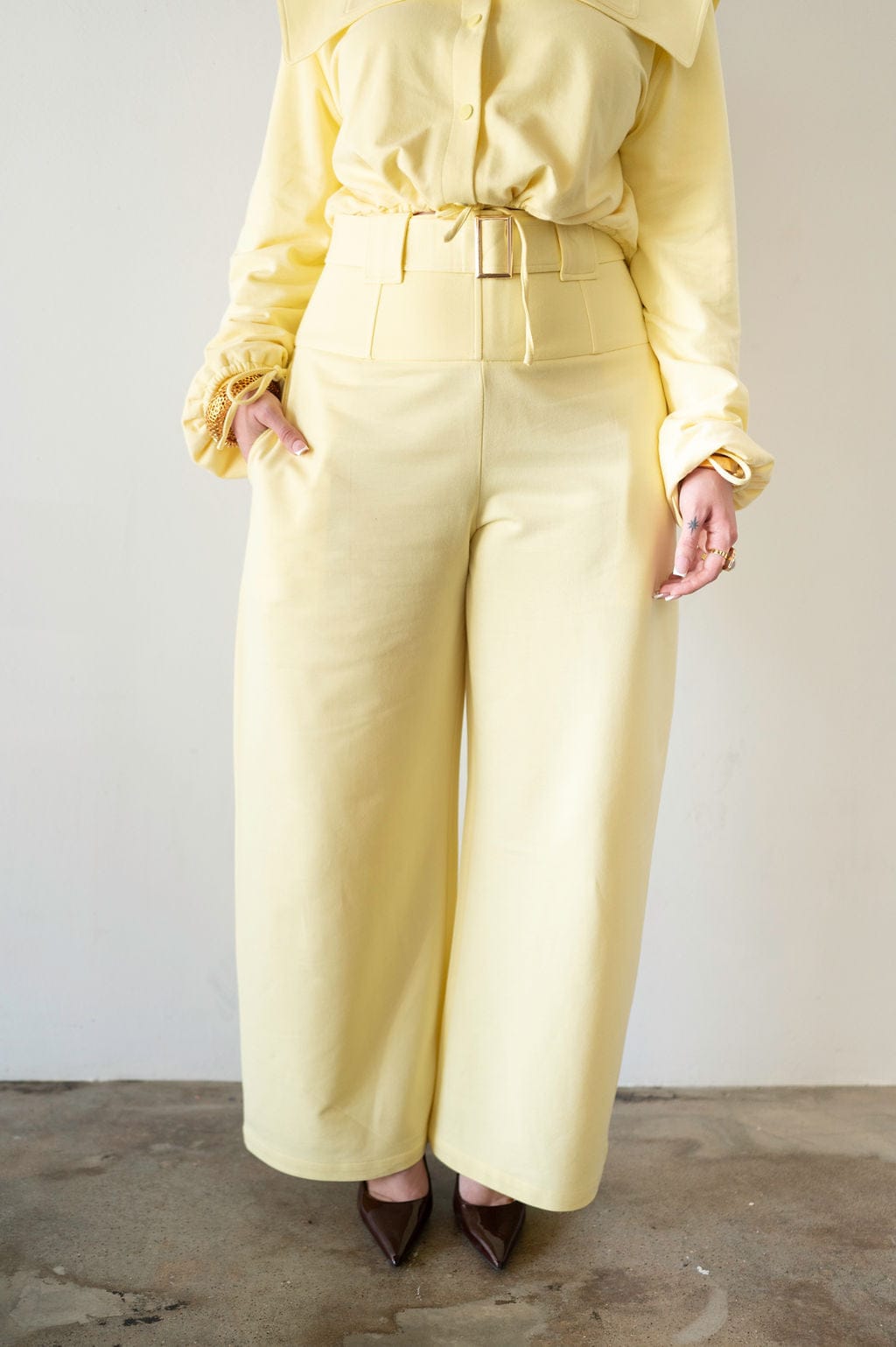 Uniq High Waisted Corset Barrel Pants in Butter Yellow