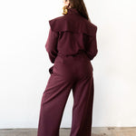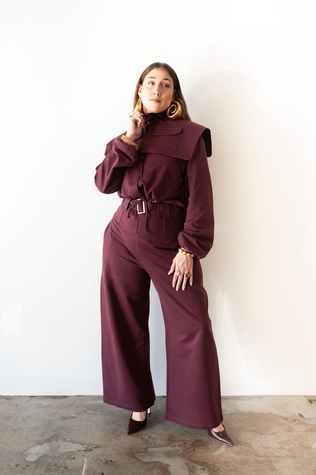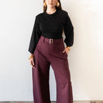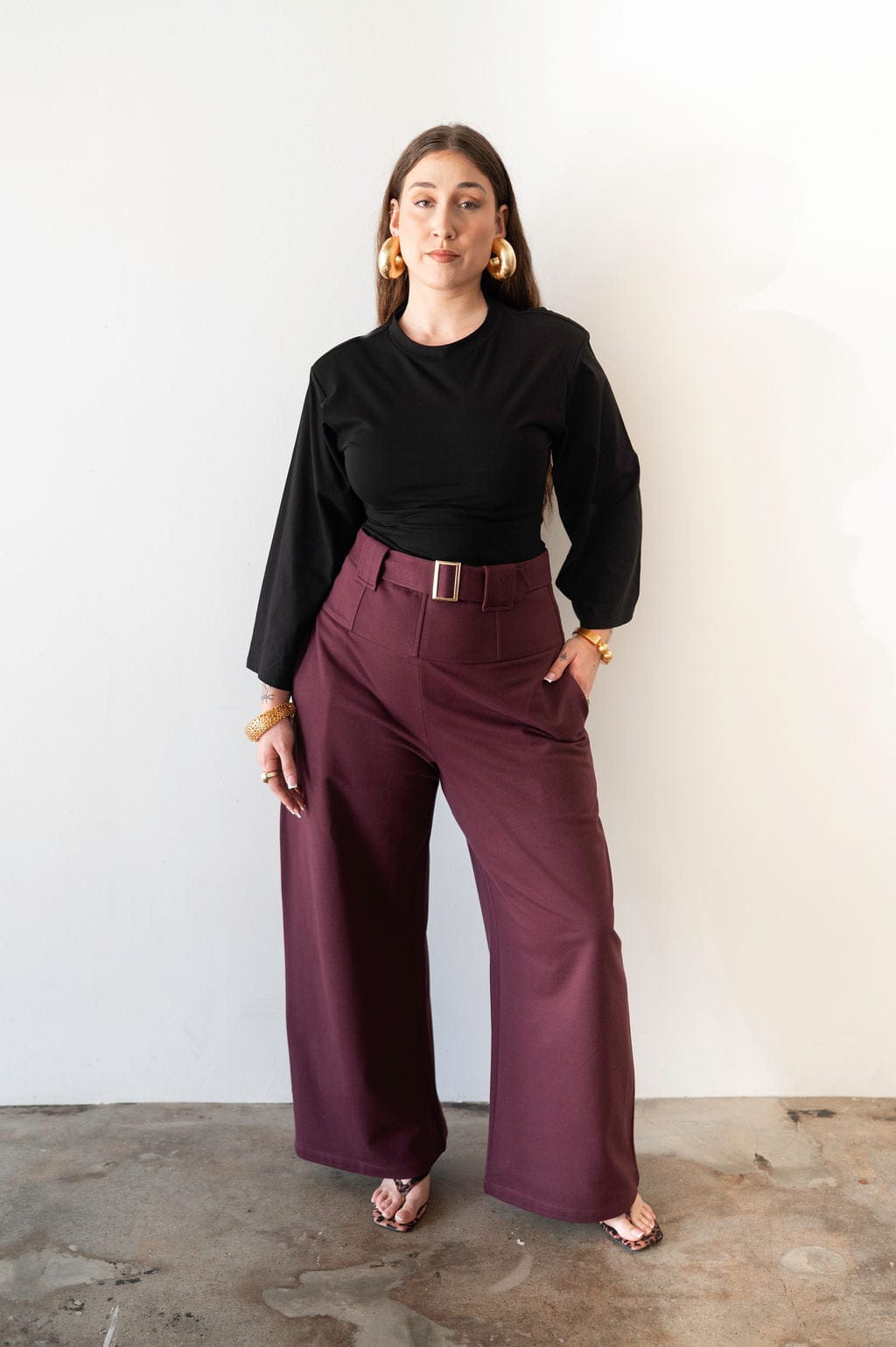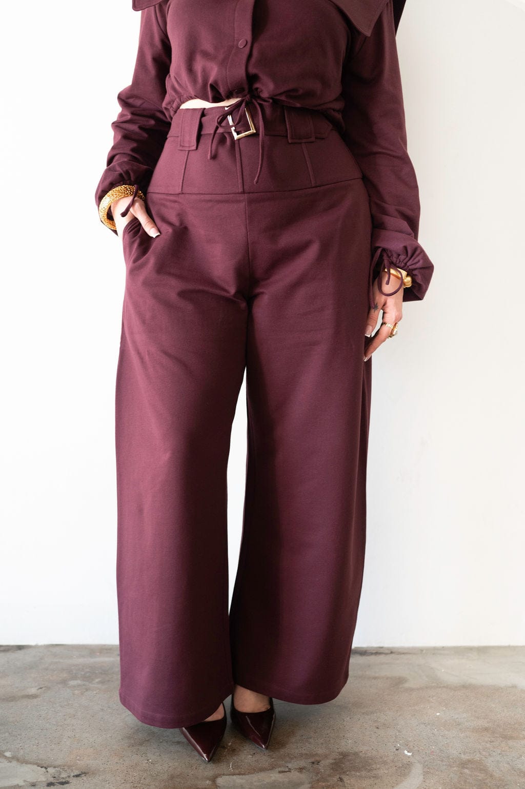 Elevate your everyday style with these striking high-waisted barrel pants in rich plum. Crafted from 100% cotton, they deliver the comfort you crave without sacrificing that effortless cool factor. The corset-inspired silhouette flatters your figure while the relaxed barrel leg keeps things laid-back and modern. Perfect for those who refuse to choose between looking sharp and feeling great—slip them on and own the room.