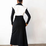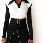 Valentina Exaggerated Collar Long Sleeve Color Block Cropped Top in Black and White